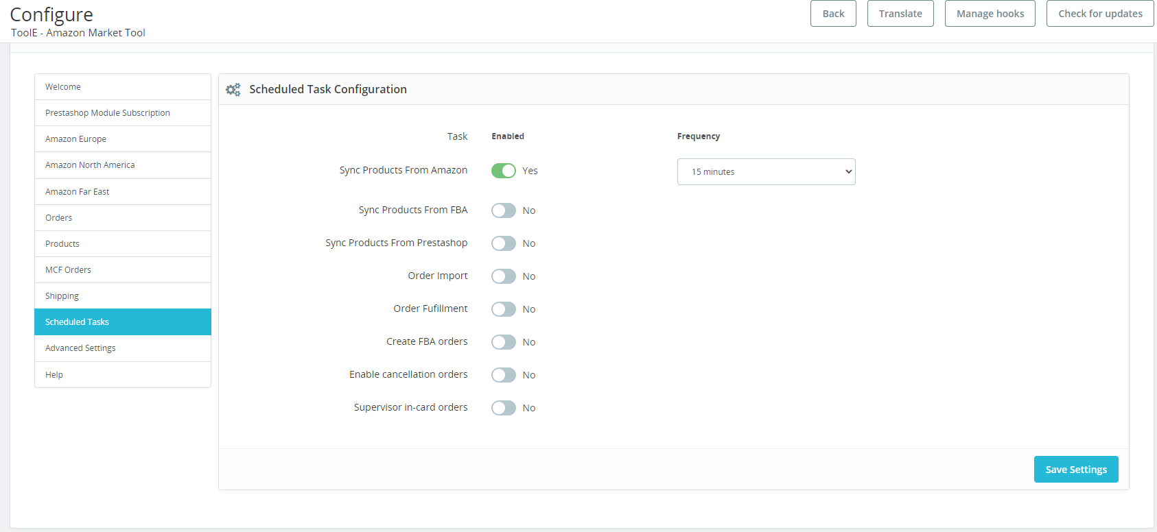- Go to “Scheduled Tasks” and enable “Sync Products From Amazon” => Select your Frequency and Save your settings