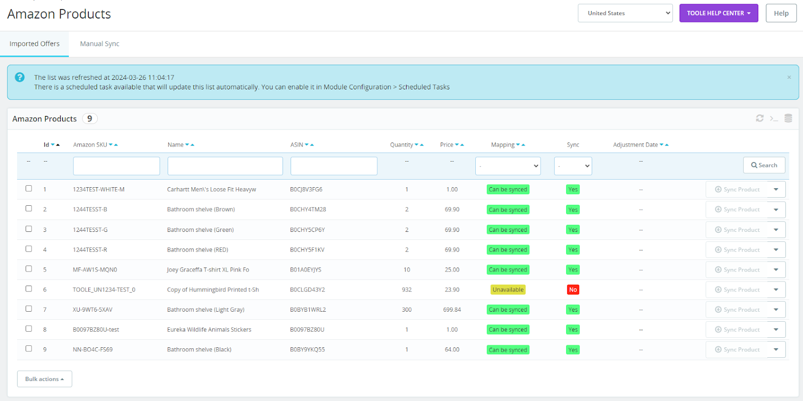 - In the Amazon Sync Tab you'll be able to manually import and sync your Amazon Products.