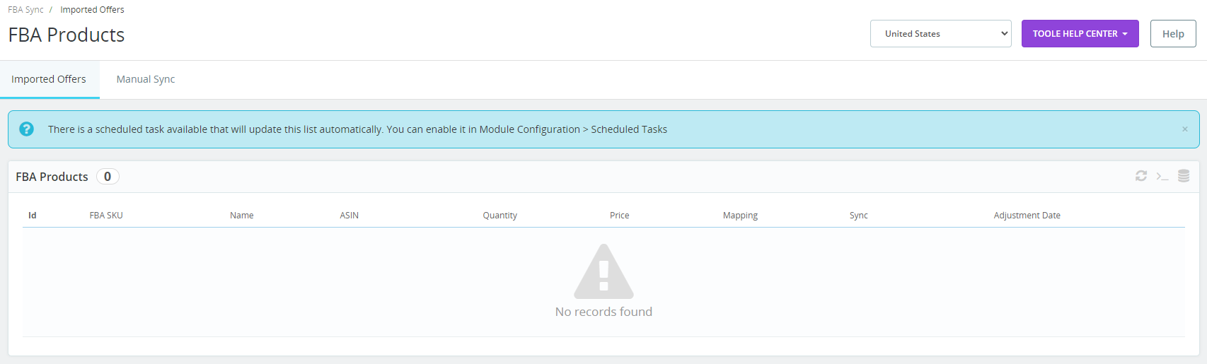In the Amazon Sync tab you'll be able to import your Amazon FBA and FBM products to PrestaShop, and sync their information, either manually or automatically.